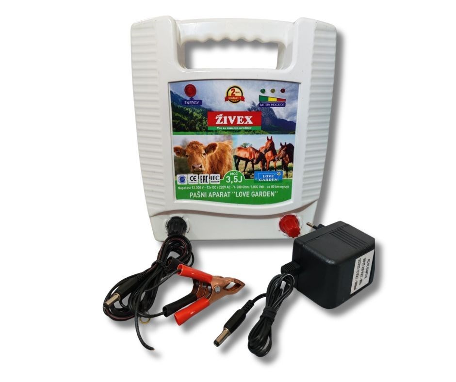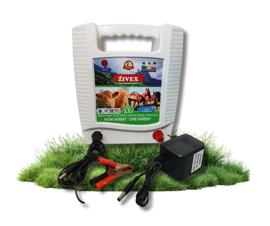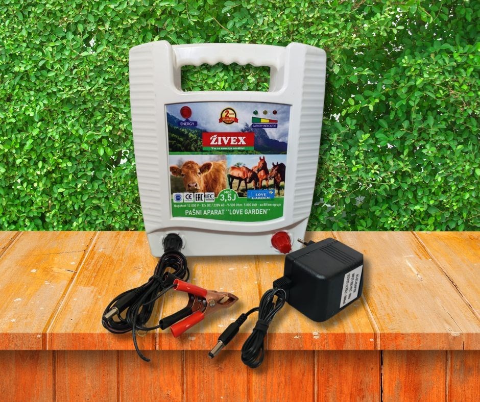 Pašni aparat Love Garden 3,5 J je zanesljiv električni pastir, namenjen varovanju manjših in srednje velikih pašnikov, vrtov, sadovnjakov ter drugih ograjenih površin. Z izhodno energijo 3,5 J in napetostjo približno 5.800 V zagotavlja učinkovit električni impulz, ki živali odvrne od ograje, hkrati pa je varen za ljudi in živali. Primeren je za krajše do srednje dolge ograje ter za območja z manj vegetacije.