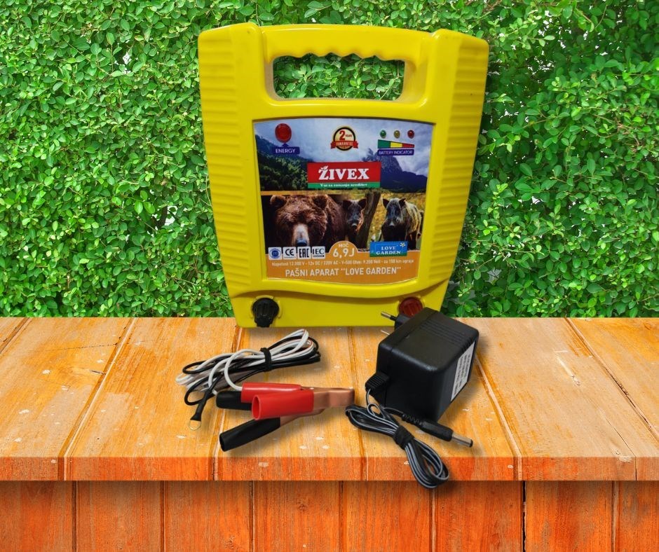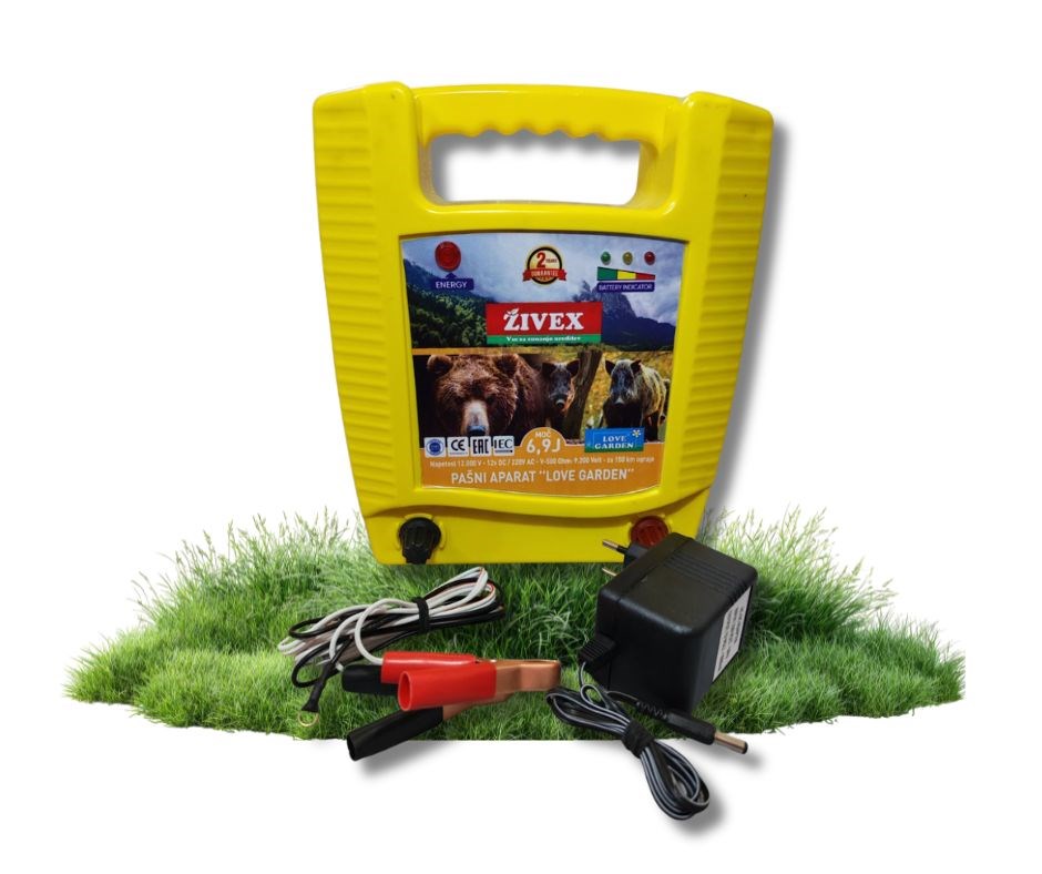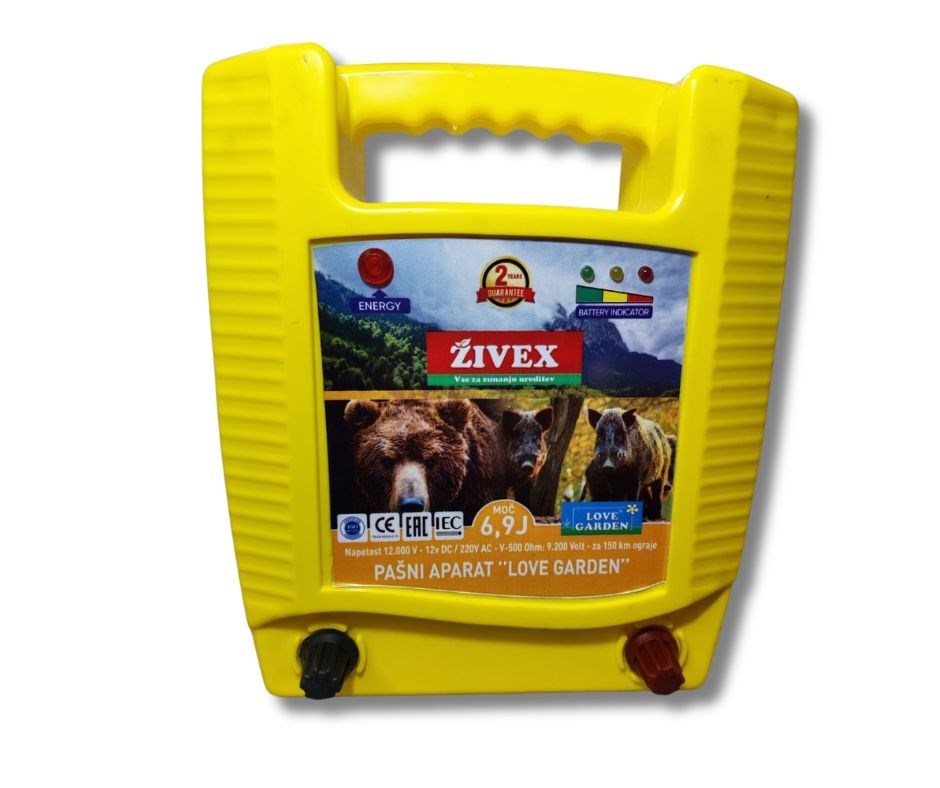 Pašni aparat Love Garden 6,9 J je močan električni pastir, namenjen varovanju pašnikov, vrtov, sadovnjakov in drugih površin pred pobegom živali ter vdorom divjadi. Z izhodno energijo 6,9 J in napetostjo do 9.200 V zagotavlja zanesljiv električni impulz, ki je za živali neprijeten, vendar varen. Primeren je za srednje dolge in daljše ograje ter za območja, kjer je prisotna tudi vegetacija.