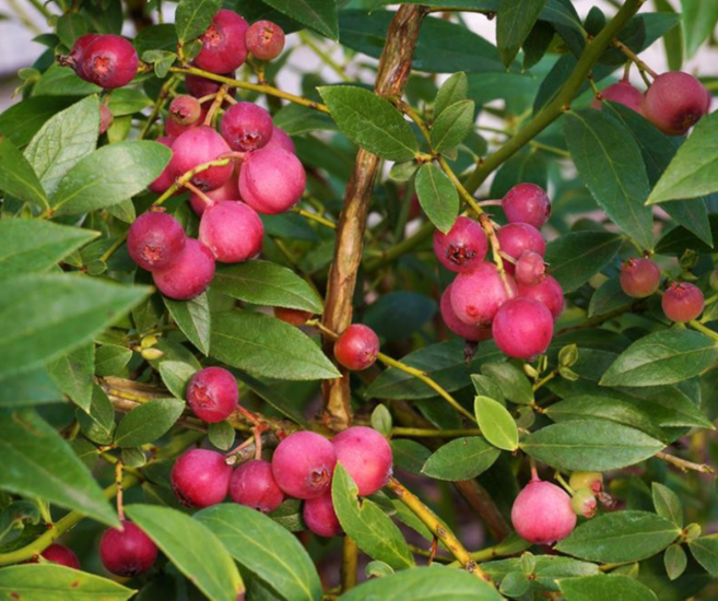 Edinstvena ameriška borovnica z dekorativnimi rožnatimi jagodami in sladko-kislim okusom