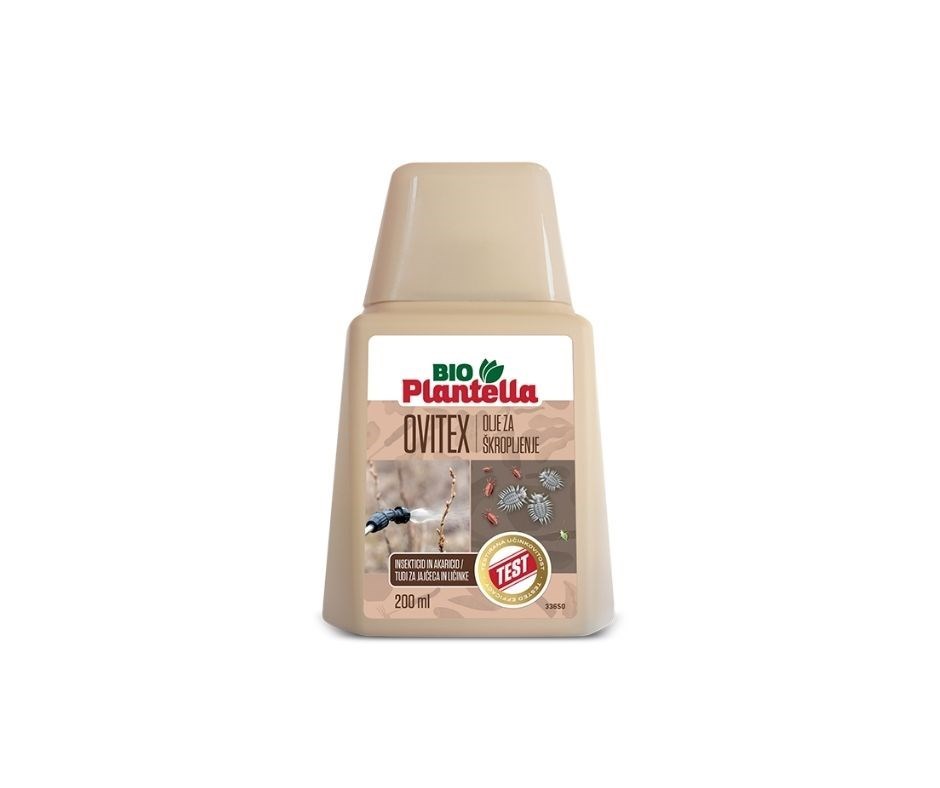 Insekticid Bio olje Ovitex 200 ml je naravni kontaktni insekticid in akaricid na osnovi parafinskega olja, namenjen zatiranju širokega spektra škodljivih žuželk in pršic na sadnem drevju, zelenjavi, okrasnih rastlinah in drugih kulturah. Deluje tako, da škodljivce pokrije s tankim oljnatim filmom, ki onemogoči dihanje in gibanje škodljivcev, kar vodi v njihov pogin. Mehanizem delovanja temelji na fizičnem učinku, ne na sistemskem strupu, zato je primeren tudi za integrirano in ekološko pridelavo.