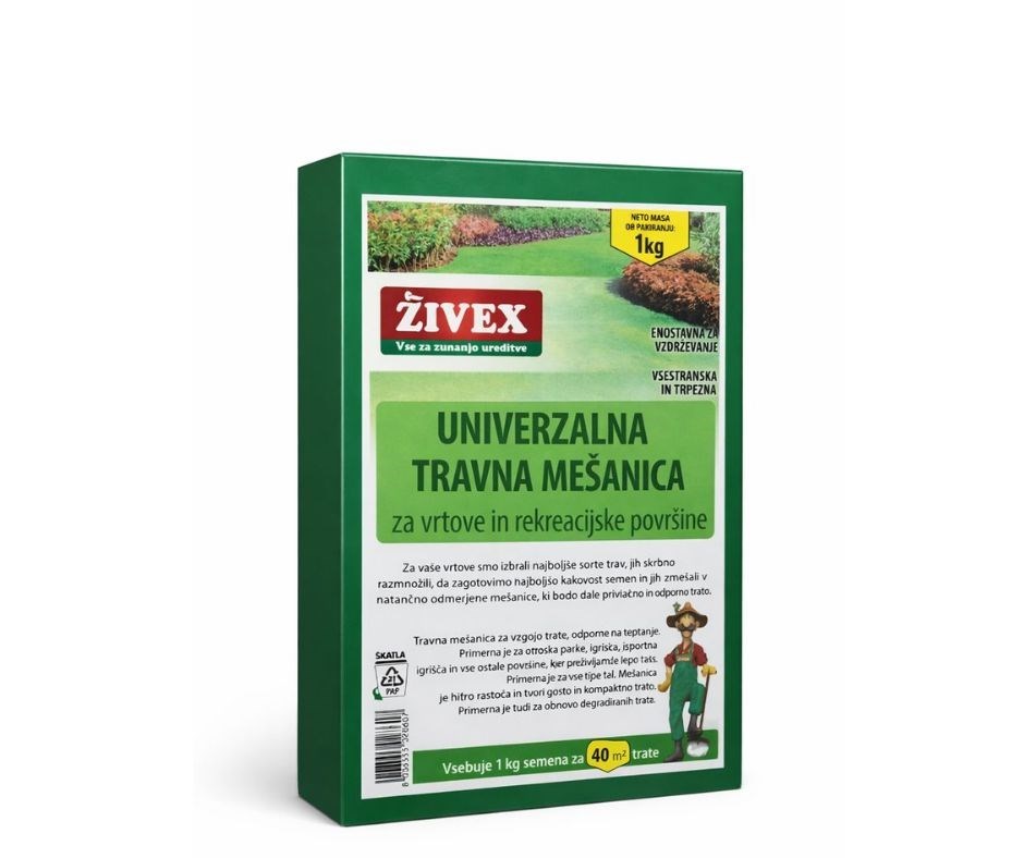 Univerzalna travna mešanica je natančno izbran paket travnih semen, ki je zasnovan za ozelenitev vrtnih površin, gredic, rekreacijskih površin ali parkov in tvori gosto, estetko lepo trato. Ta vrsta mešanice je primerna za različne rastiščne pogoje, vključno s sončnimi ali delno senčnimi površinami, zato je odlična izbira, če si želite vsestranske in robustne trate z visoko odpornostjo.