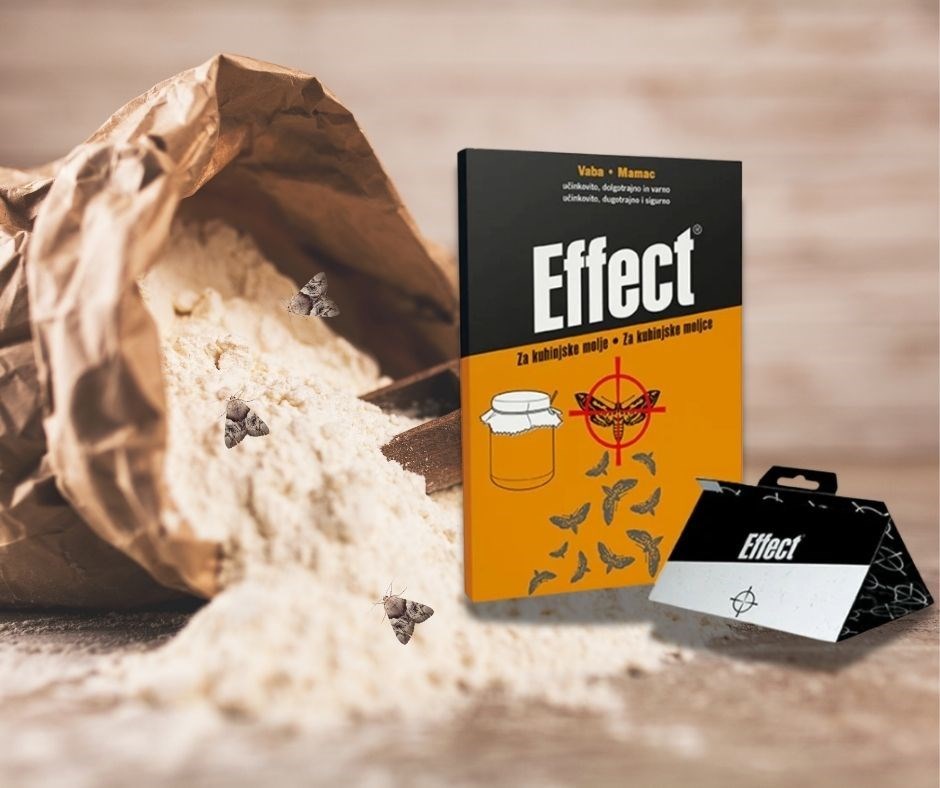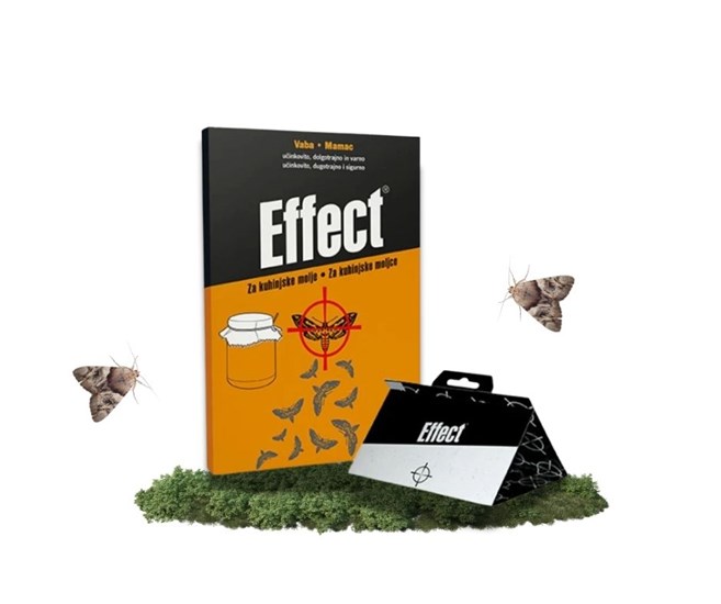 Vaba za kuhinjske molje feromonska Effect je namenjena odkrivanju in zmanjševanju populacij kuhinjskih moljev v kuhinjah, shrambah, domačih prostorih in poslovnih objektih. S pomočjo feromonskega privlaka privablja samce moljev, kar pomaga preprečevati parjenje in nadaljnje razmnoževanje ter s tem zmanjša pojavnost teh nadležnih insektov.