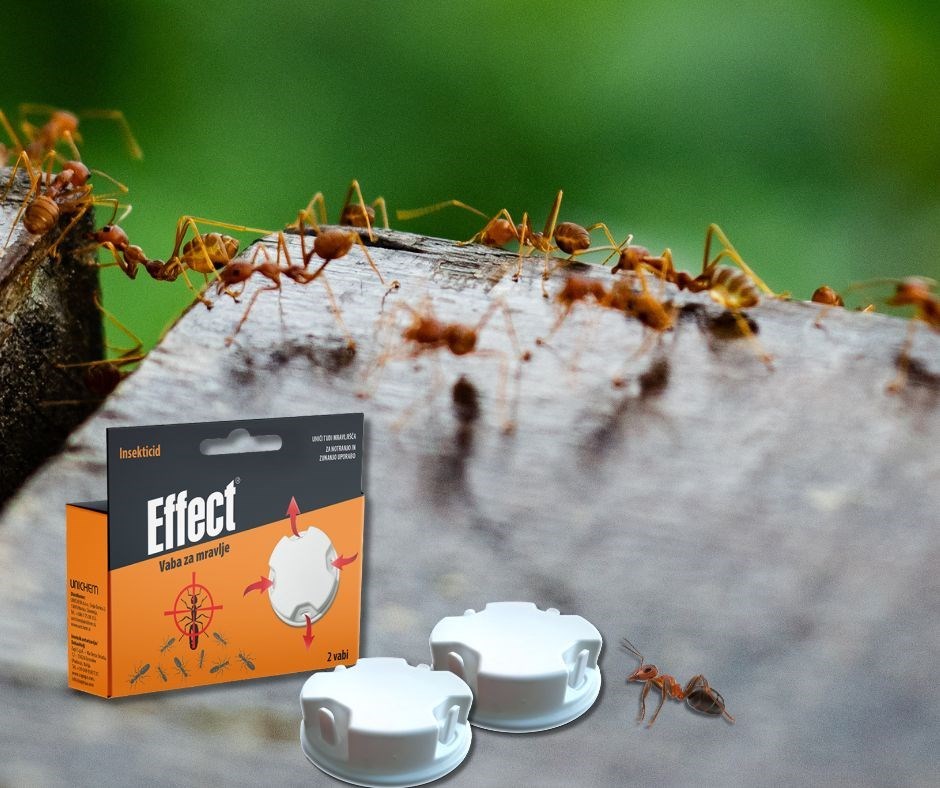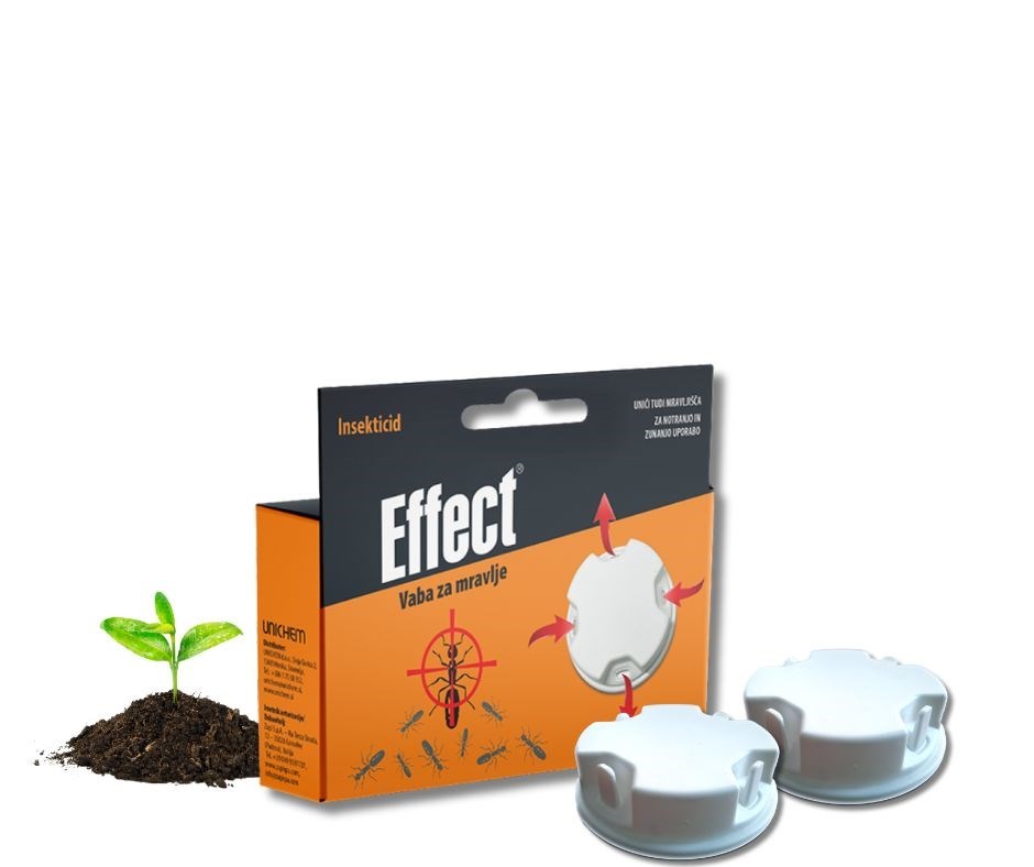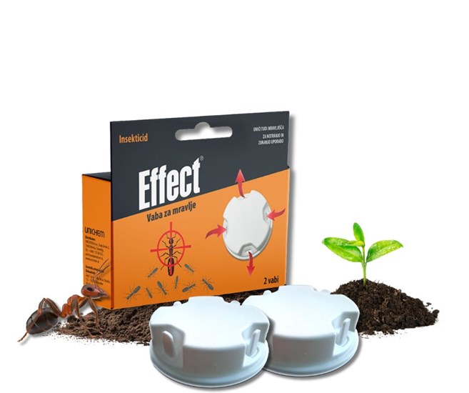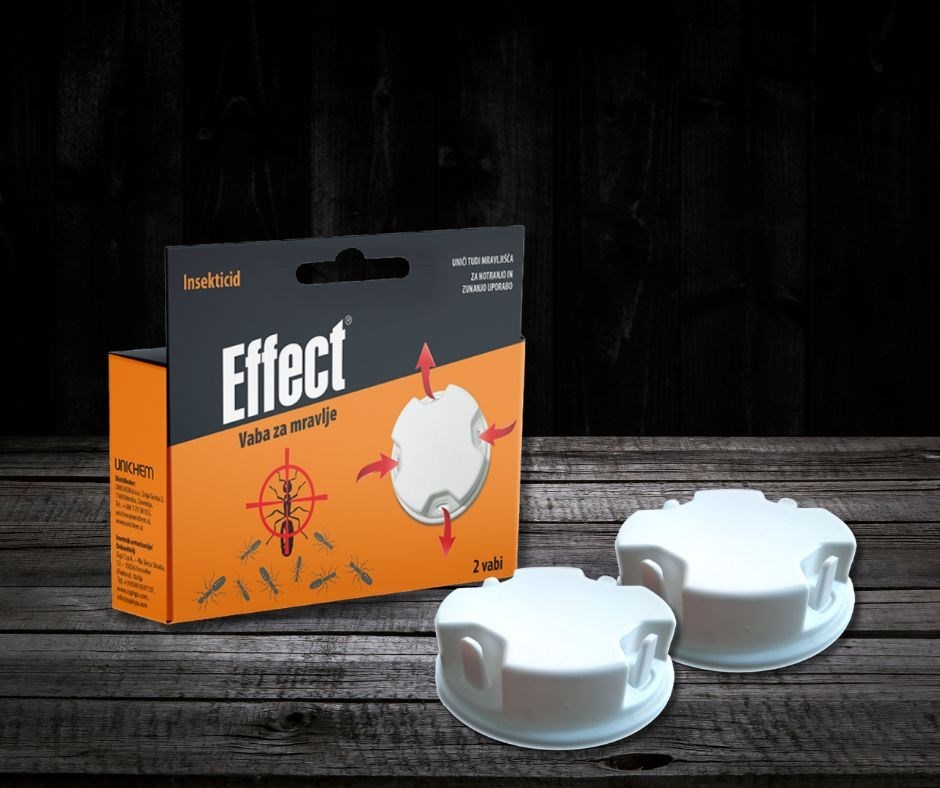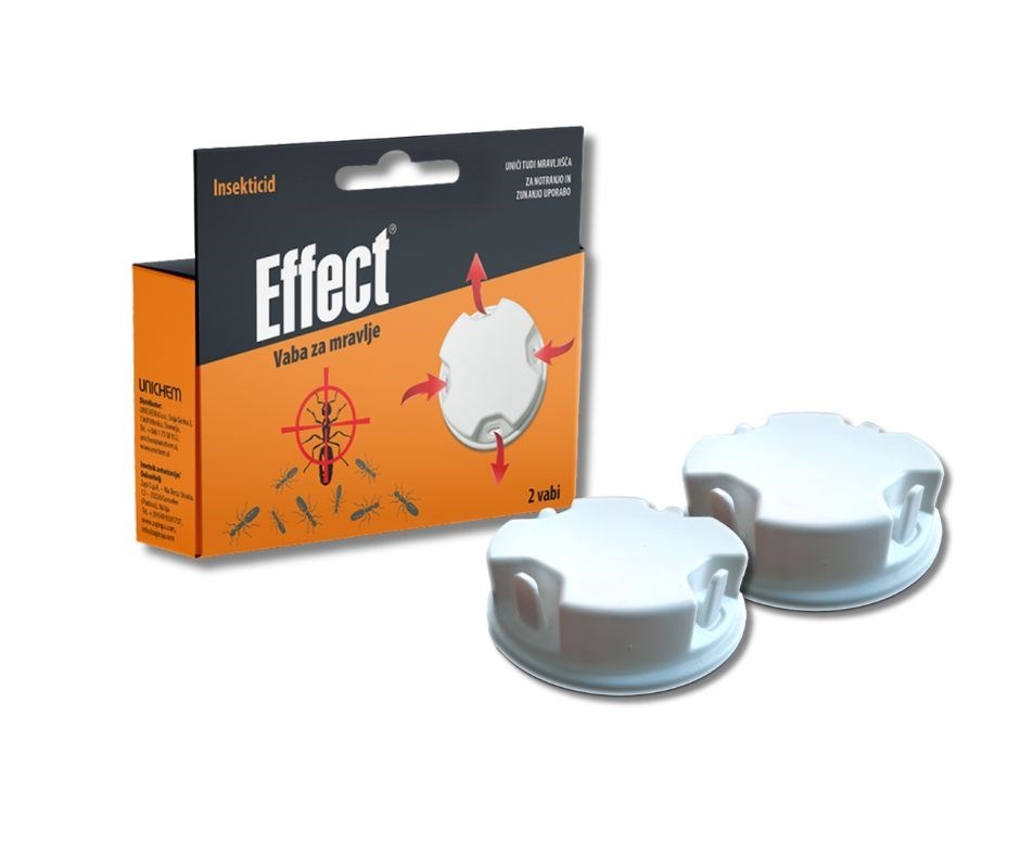 Effect vaba za mravlje je preprosta in učinkovita rešitev za nadzor mravelj v in okoli doma, poslovnih prostorov ali na terasi. Namenjena je privabljanju in uničenju mravelj ter njihove kolonije, saj mravlje vabo prenašajo nazaj v gnezdo, kjer se učinek razširi tudi na druge osebke, vključno s kraljico.